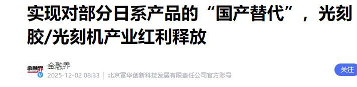成绩于我国的猖厥挽救,和外界的技能禁闭压力,国产光刻胶的研发和产业链的完善齐得到了肉眼可见的跳跃,而最具代表性的就是在本年十月发布的这则喜报。
