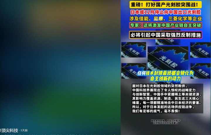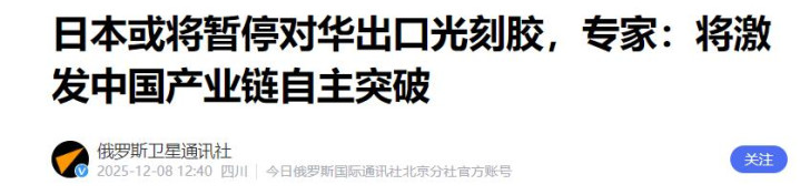 据包括《俄罗斯卫星通信社》《亚洲时报》在内的多家巨擘媒体于12月8日报谈称,为了叮嘱我国对日本的万般制裁,高市早苗政府尽可能从12月中旬运行,就全面暂停光刻胶产物的对华出口。