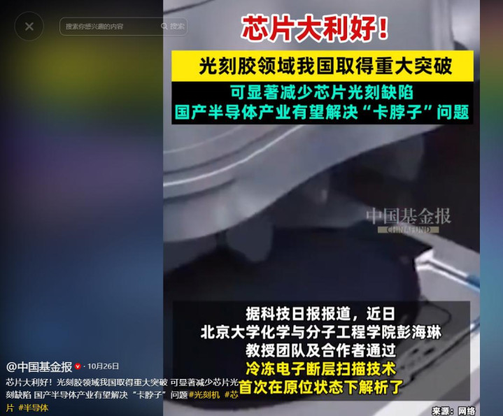 据了解,在2025年10月份的时候,北大化学与分子工程学院的某接洽团队在光刻胶边界上获得了巨大落拓,不仅能显赫减少国产芯片的劣势,就连芯片良率齐因此而升迁超99%。